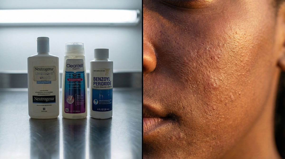 Drugstore brands formulated for lighter skin, benzoyl peroxide burns.